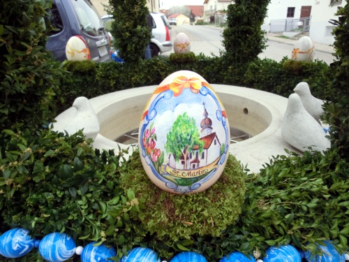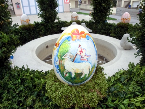 Für das nächste Jahr haben sich die „Landfrauen aktiv” vorgenommen den Brunnen auch noch mit handbemalten Eiern weiter zu verzieren. Am Palmsonntag wurde der Osterbrunnen vom Diözesanjugendseelsorger Christoph Witczak eingeweiht.