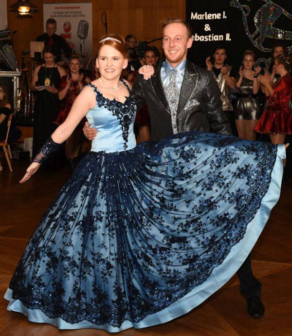 Eröffnet wurde der Tanzreigen wie immer mit einem klassischen Gardemarsch, mit dem sich auch die Kindergarde zackig und schwungvoll in Szene setzte. Die neuen Hofmarschälle für den Kinderhofstaat, Annika Gößl und Amina Reisinger, bestanden ihre Feuertaufe. Die Jugendgarde glänzte mit ausdruckstarker Darbietung. Traumhafter und romantischer Höhepunkt eines Eröffnungsballes sind natürlich die Prinzenwalzer. Bereits Nina und Joseph begeisterten durch ihre unbekümmerte Coolness bei ihrem träumerischen Tanz. Den Walzertraum schlechthin verkörperten dann Marlene und Sebastian mit royaler Eleganz. Anschmiegsame Passagen, kraftvolles Heben und schwungvolle Drehungen verschmolzen zu einem Sinnerlebnis und Augenschmaus.
